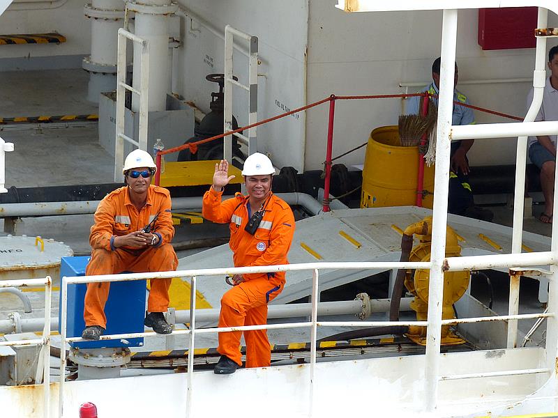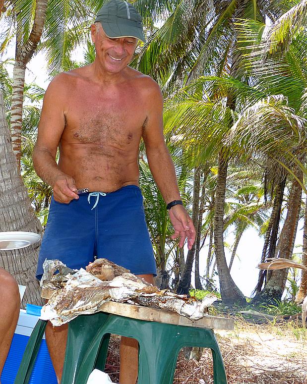 Pour ce qui est du programme de ces 15 derniers jours, nous avons procédé aux "échanges de matériel" entre les deux bateaux, puisque nous avions dans nos soutes plein de choses pour Damien qu'il n'aurait pas pu transporter en avion, et de notre coté, nous avons récupéré ce qui était resté à bord de notre ancien Chamicha. Plus qu'à tout trier et éliminer tout ce qui est inutile. Pas une tâche bien facile ! surtout avec la chaleur étouffante (pas de vent) et l'humidité ambiante, on frise les 85 % !!!