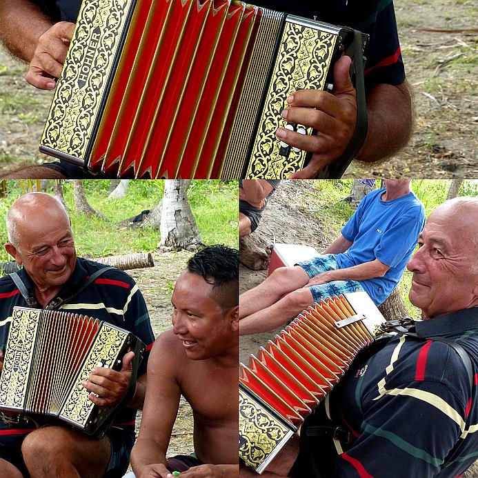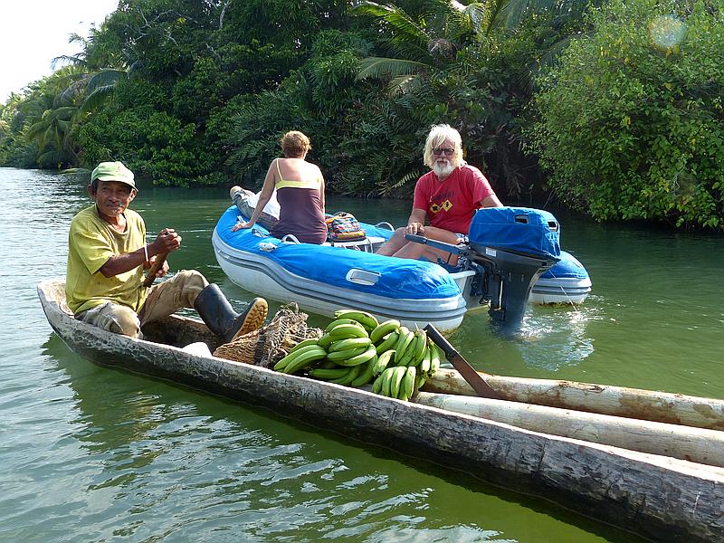 Achat de bananes, photos, douche à l'eau douce... une fois de plus quelques heures bien remplies avec rencontres ailées au retour. |
