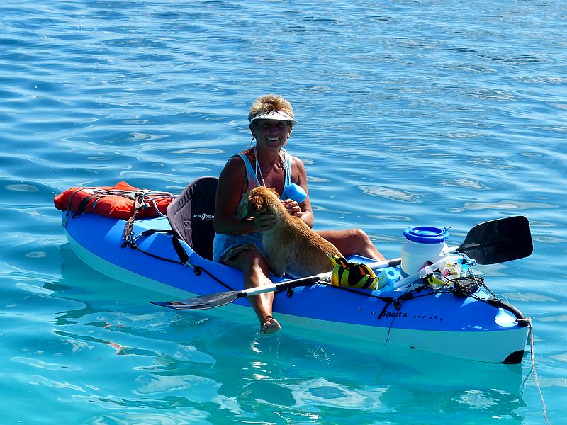 Aux cayos holandes, une adorable petite chienne, de l'île proche, semble aimer venir sur nos bateaux, à la nage, tranquillement... A-t-elle vécu sur l'un d'entres-eux ou est-ce une aventurière qui aimerait bien se faire adopter ? on ne saura pas mais toujours est-il qu'elle profite à chaque fois d'un tour gratuit ... soit en annexe soit en kayak pour revenir sur son île. Renseignements pris, il semble qu'elle ait été sur un bateau toute petite, mais par quelle circonstance est-elle arrivée là ? laissée par le dit-bateau ? souci de santé du proprio ou autre motif, toujours est-il qu'elle est venue faire un tour sur Chamicha et qu'elle y serait bien restée... mais bon, pas facile les animaux en grand voyage, et notre Flo ... aurait-elle apprécié de partager ses croquettes ? Non, pas sérieux, avec un animal à bord, difficile de laisser le bateau plus de 3 jours pour partir découvrir un pays. Le plus difficile étant un retour en avion à la maison, souvent cher, voir très cher (prix du billet, frais vétérinaires divers souvent inutiles mais obligatoires, formalités locales souvent stupides quand on voit l'état des pauvres animaux sur place, parfois aussi une quarantaine...) Mais bon, celle-ci comme notre minet Ti Gris du chantier de Sète nous auraient bien adopté sans hésitation.