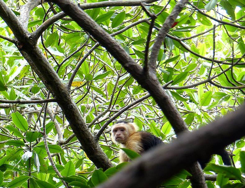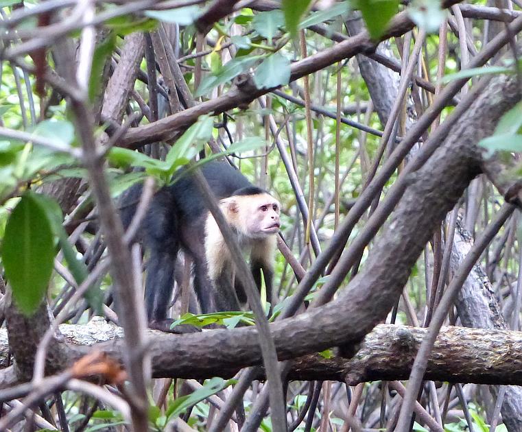 en revenant de Panamarina sous la voûte des grands palétuviers ... enfin... un singe capucin dans mon objectif