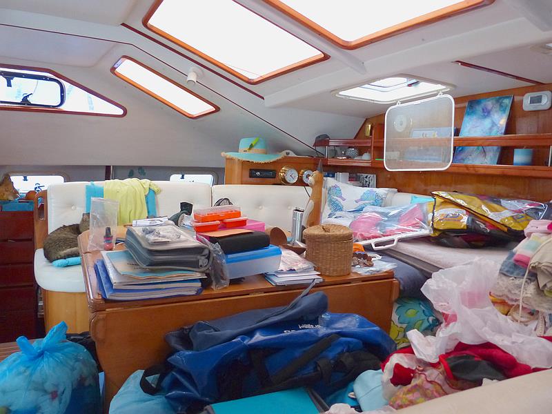 Après de nombreux, très nombreux, trop nombreux voyages entre le chantier et notre maison flottante, nous ne pouvons presque plus entrer dans notre carré, il y en a de partout, mais aussi dans le cockpit, et puis aussi dans les coursives... plus qu'à trier, laver, ranger, jeter, bref, alléger au maxi notre bateau... enfin, essayer tout au moins ...