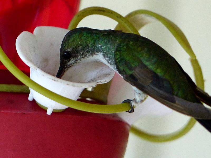 et une foule de mignons colibris attirés par le sirop mis à leur disposition.