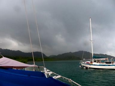 Il semblerait que le Rio Dulce vers lequel nous allons nous diriger pendant cette période soit aussi une zone où l'eau du ciel ne manque pas ! |