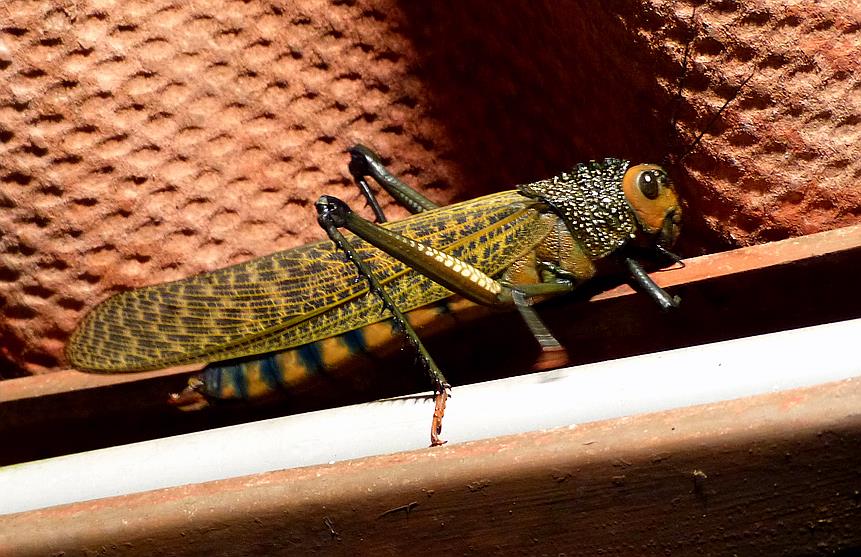 | |  | | Grande sauterelle ou beau criquet ??? ... le ou la vorace semble être un ennemi des palmiers... il ou elle mesure bien environ 8 cm quand même. |