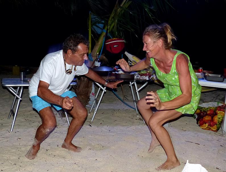 Dernière soirée avant leur départ, apéro sur la plage d'Elefante. |  |