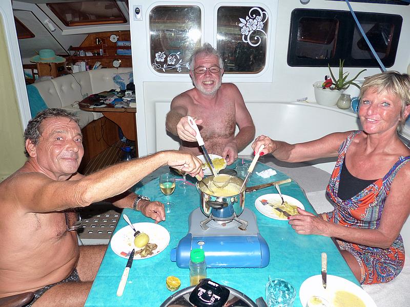 Le chef au fourneau comme toujours, parfois une partie de "petit train mexicain" de fin de journée au moment de l'apéro ou plus tard. La vie de bateau, quoi... |  |