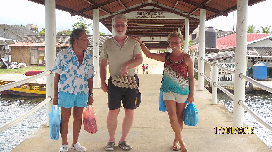 Retrouvailles ... avec nos amis Monique et Jean-Claude de la Fée Verte. Ils attendaient eux aussi du matériel en provenance de France et de Martinique ... il ne fallait pas désespérer... Nous étions en route quelque part en Sète et le Panama. C'était notre dernière livraison !