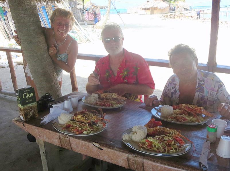 Le restaurant y propose une carte assez sympa, le tout dans la bonne humeur. Il faut bien en profiter dans quelques heures Monique et Dominique retourneront à la maison à Linton, Monique et Gilbert prendront l'avion pour aller voir si la neige est enfin arrivée en Suisse et nous, nous irons refaire des appros avant de partir dès l'aube suivante retrouver notre Rominet qui nous attend impatiemment aux San Blas. |