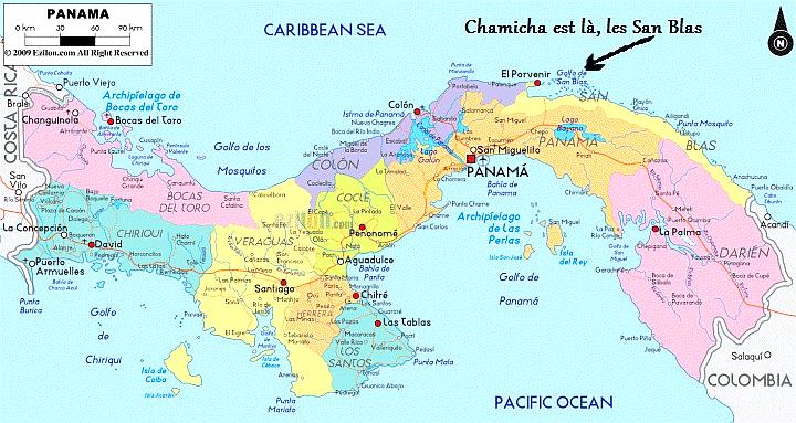 Sur la carte du Panama, nous partons de Isla Linton, en gros à droite de "Portobelo".