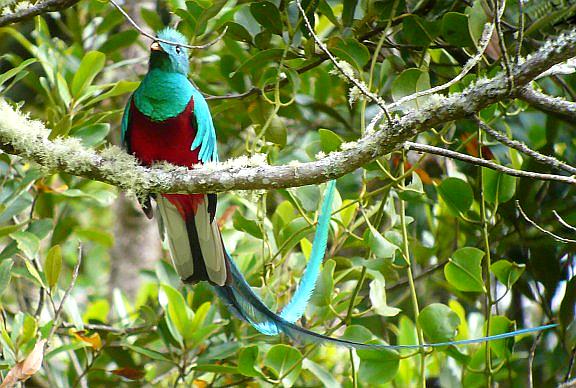 Le Quetzal resplendissant (Pharomachrus mocinno) est une espèce d'oiseau mythique de la forêt tropicale — l'oiseau sacré des Mayas — et l'oiseau national du Guatemala. Cet oiseau cache son plumage d'émeraude et de rubis dans l'épaisseur végétale de la forêt tropicale. C'est pour cela qu'il est si difficile à repérer.