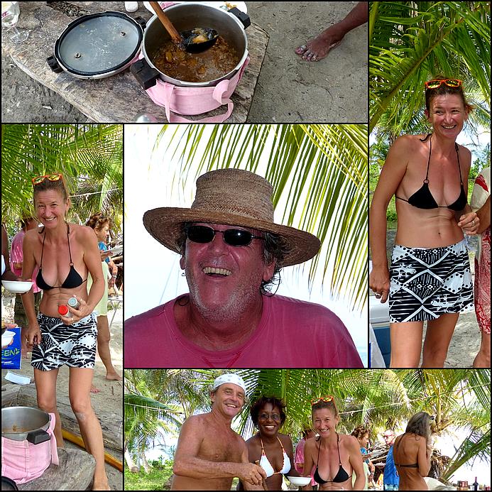 Petite contrepartie, quelques invitations à bord de Chamicha dont une fois... avec recette inédite , poulet au coco et gingembre préparé par le moussaillon, moi donc, un régal... Pas souvent que je me mets aux casseroles mais c'était super bon... Aie mes chevilles !!!! Voilà c'est un autre épisode de la "vie de bateau" dans nos îles.