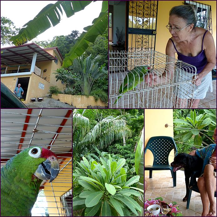 Ils habitent maintenant une toute jolie maison construite à quelques kilomètres de la marina. Entourée d'une magnifique végétation tropicale, ils ont aussi quelques sympathiques compagnons à poils et à plumes... dans l'ordre de taille ...