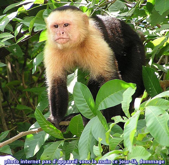 A la marina, une fin d'après-midi, en allant jeter allègrement quelques poubelles pour soulager nos bateaux respectifs, Damien et moi nous avons eu le plaisir de voir enfin de près un groupe de singes capucins. Dommage, je n'ai pas mon appareil photo quand je fais du déménagement !!! C'est pourtant rare de les voir de si près, si bien et surtout si longtemps. En voici un, trouvé sur internet, vous verrez sa jolie frimousse. Ces singes sont friands de fruits.