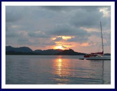 Et nous ? et bien, nous reprenons taxi et lancha pour retrouver notre matou qui nous attend aux San Blas avec le ventre "presque" vide... enfin tente-t'il de nous l'expliquer ! Concert de miaous et câlins à profusion e reprise de la vie de bateau ... |  |