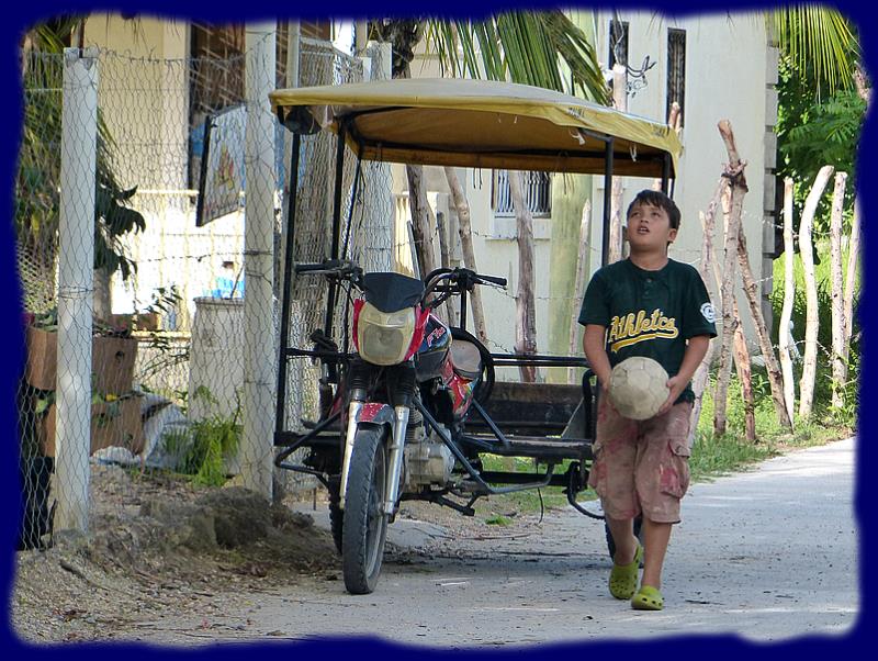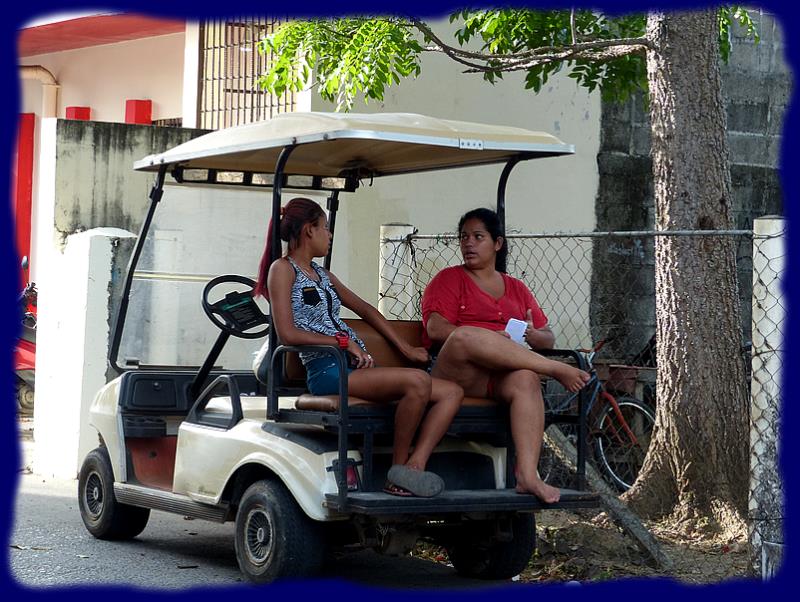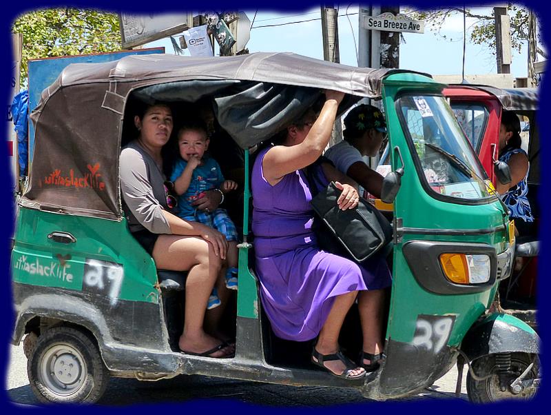 De Savannah Bight à Mangrove Bight, la seule et unique petite route de l'île, nous avons vu dansle village 3 voitures, quelques petits camions-plateaux, une poignée de motos et aussi ces sortes de vieux scooters transportant des passagers, dont nous ! En route pour la visite ... |