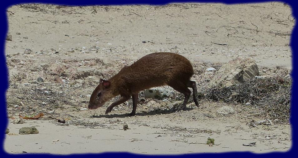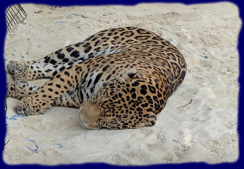 Un autre couple de lion, plus jeune, un adorable lionceau qui n'a qu'une envie, jouer, un couple de pumas, deux splendides guépards, quelques singes, des cervidés en voix d'extinction, des aras et autres perroquets colorés, des poules, des lapins, des pintades, moins exotiques certes mais les gosses les adorent aussi. Des jolis écureuils grignotaient des graines au dessus de nos têtes dans les grands arbres qui protègent du soleil. Nous y allons avec notre annexe, histoire de voir ce petit monde et de déguster une bonne "margarita" les pieds dans l'eau !!! |