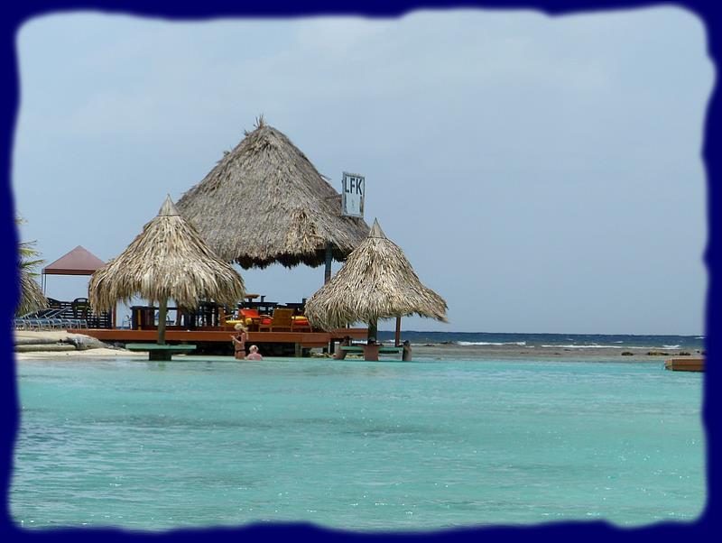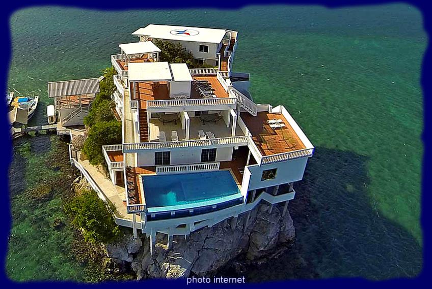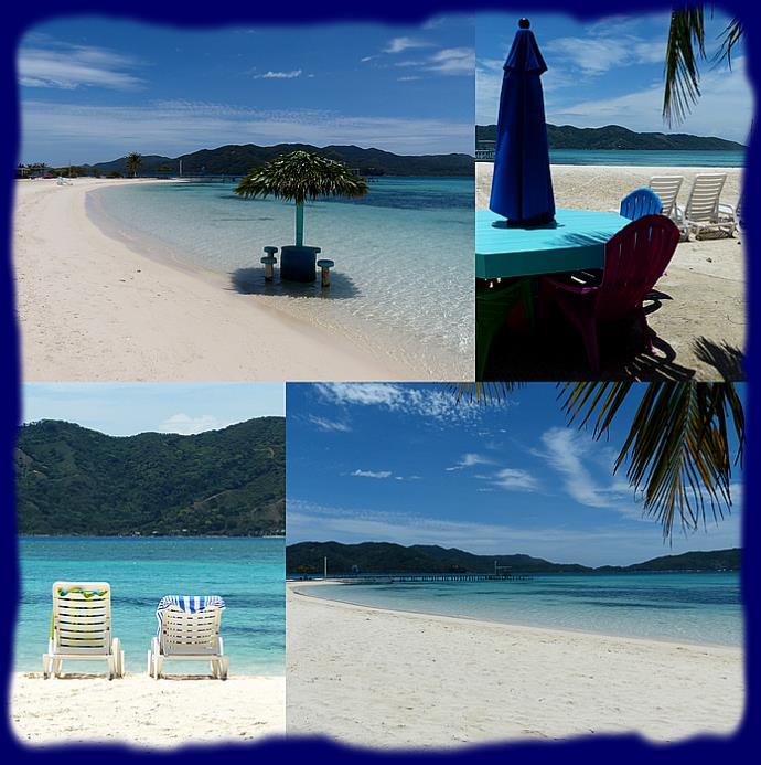 C'est dans ce décor hors norme et de rêve pour beaucoup (même pour nous, je vous assure) que nous avons passé une délicieuse journée. En fait c'est bien de vieillir... un peu... c'est l'occasion de passer un agréable moment, moment que l'on prolongera d'ailleurs en allant voir de plus près un bel établissement qui se trouve à quelques brasses du bateau, le restaurant "Manati" (appellation espagnole du lamentin, vous savez ce gros animal marin tout doux que l'on voit surtout du coté de la Floride). Certaines conditions feraient que cette île qui dispose de réserves d'eau douce et de végétation appropriées pourrait ou en aurait abrité, mais si tel est le cas ils ont dû être tous mangés !!!