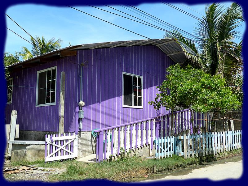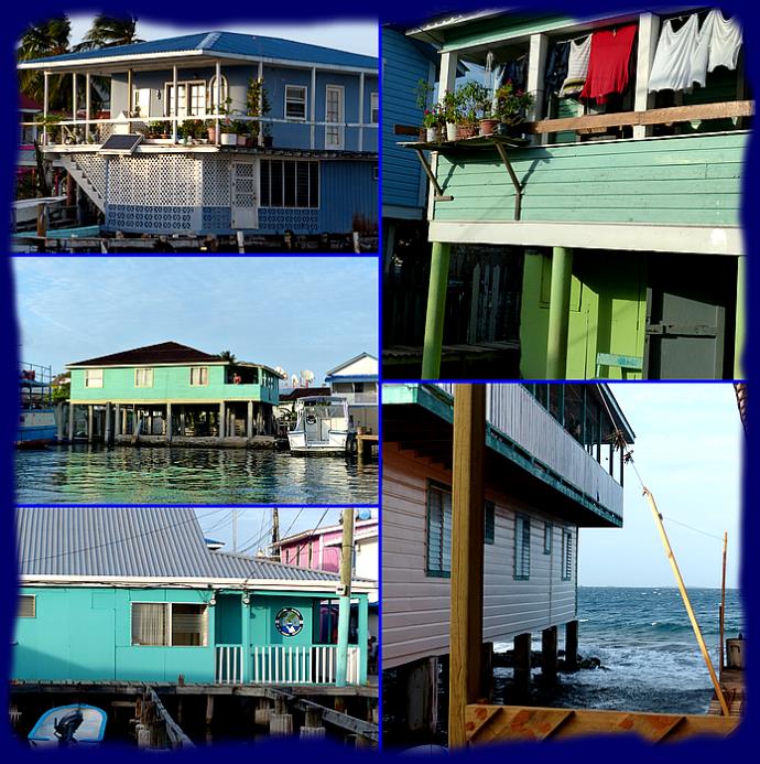 | | | | |  | | Presque toutes les maisons sont construites sur pilotis, même souvent quand elles sont sur la terre ferme; On nous explique que cela est utile les jours de très mauvais temps pour les protéger des vagues qui rentrent dans le lagon. |