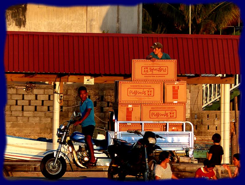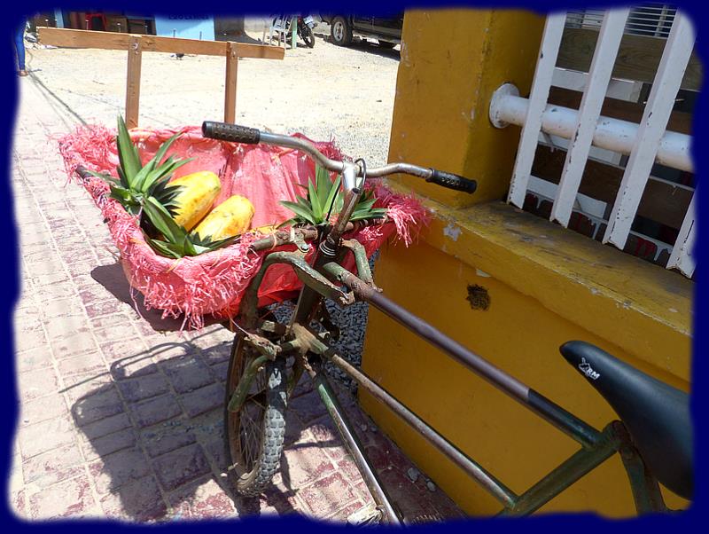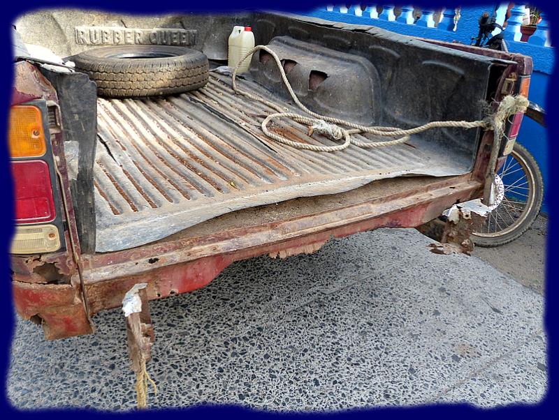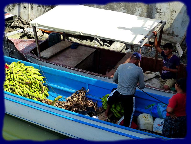 | | |  | Comme toujours tout l'approvisionnement arrive par la mer, c'est le jeudi normalement ... mais cette fois ce sera un vendredi, le jour aussi de notre arrivée. Nous assistons au déchargement de quantité de marchandises de toutes sortes, de l'alimentaire aux matériaux de construction... Nous faisons nos formalités, faciles, rapides et gratuites !!! visa valable 3 mois, bateau seulement 1 mois...