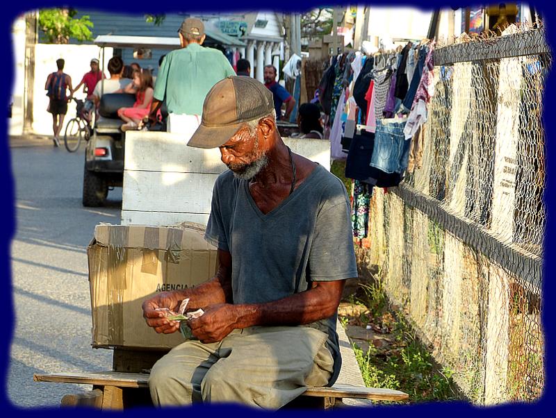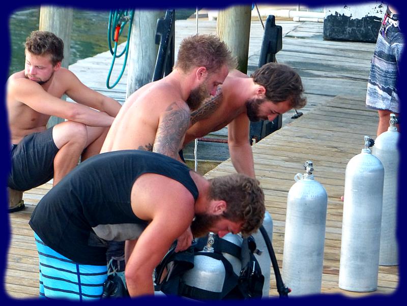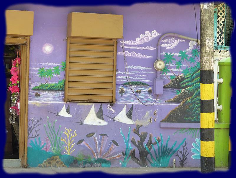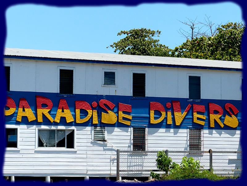 Une rue principale en bord de mer... enfin, un petit village, ou une mini ville, 5 églises différentes, plein de commerces et de petits restos et surtout, surtout, des clubs de plongée à n'en plus finir ...Padi Padi par-ci, Padi Padi par-là... partout des enseignes au fameux logo. Le look d'ici pour ces maîtres des profondeurs ... cheveux courts ou longs, parfois des dreads mais surtout une grosse barbe bien fournie rarement taillée...un peu broussailleuse, on se croirait... vous savez... là-bas... mais, bon, eux ne sont fanatiques que de fonds sous-marins et de clients accros. On parle parfois français car une partie de la clientèle est canadienne et aussi beaucoup américaine. Ce sont parait-il les cours de plongée les moins chers au monde... Nous n'avons pas vérifié. Un "Open water dive" est affiché à 275 dollars dans l'un des clubs...