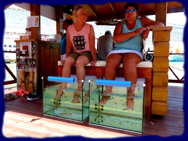 A terre, une profusion de boutiques "duty free", d'attractions en tout genre, de départ de balades pour l'ile. Il semble que le bateau reste 2 jours sur place ce qui laisse quand même le temps de visiter. Les taxis, les petits guides locaux vous accaparent dès que vous sortez du cadre du "duty" pour vous proposer la visite de la ville, les excursions, bref, tout est minuté mais assez bien organisé (pour qui aime ce genre de voyage) |