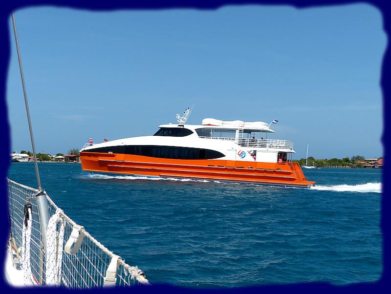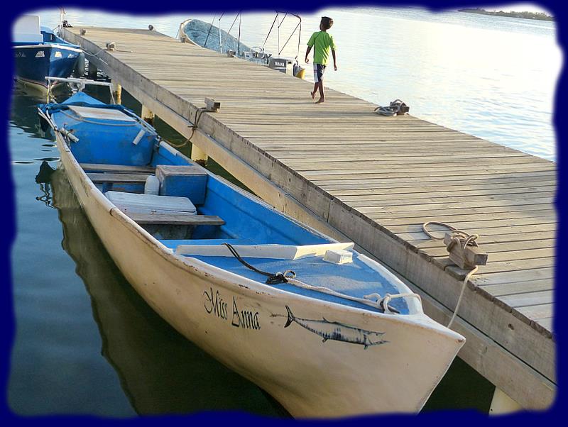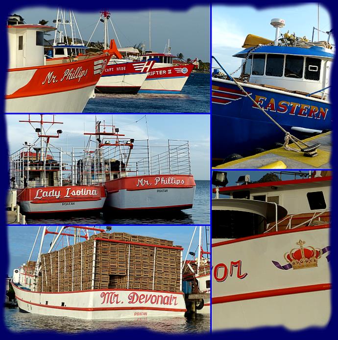 Une quantité de belles grosses lanchas blanches et oranges dont les pont sont chargés d'une quantité impressionnantes de caisses en bois, vides, nous laisse perplexe. Leur ligne de flottaison sont bien au-dessous du raisonnable. Nous apprenons par la suite qu'il s'agit de la flotte qui va partir tout prochainement pour la nouvelle saison de la pêche à la langouste à la pointe caraïbe du Honduras, là où nous sommes passés pour venir, à environ 200 milles nautiques de là. Les caisses sont en fait des pièges à langoustes. La saison commence le 1er juillet et dure 6 mois.