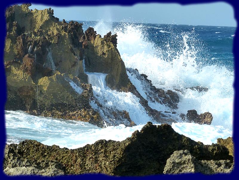 | La côte au vent d'Utila ... pas question d'arriver ici en bateau, les vagues déferlent sur des rochers découpés et très coupants... |  |