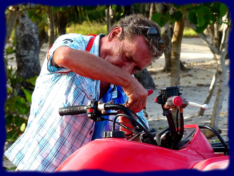 Nous louons un quad pour 4 heures, mais en moins de 2 heures le tour sera fait. Le circuit routier se limite au village, à quelques accès à deux plages, et quelques chemins nettement moins confortables. |  |