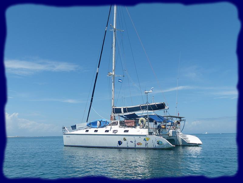 Navigation moyennement plaisante, beaucoup de nuages, d'orages tout autour de Chamicha, une mer assez formée par moment, bref, nous étions contents d'arriver au mouillage dans notre nouveau petit paradis, l'île de Guanaja, Isla de los pinos, ou en français, l'île au pins.