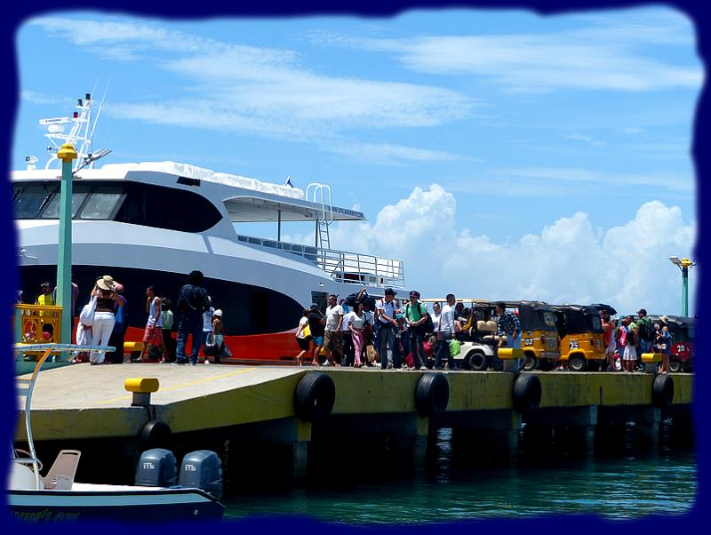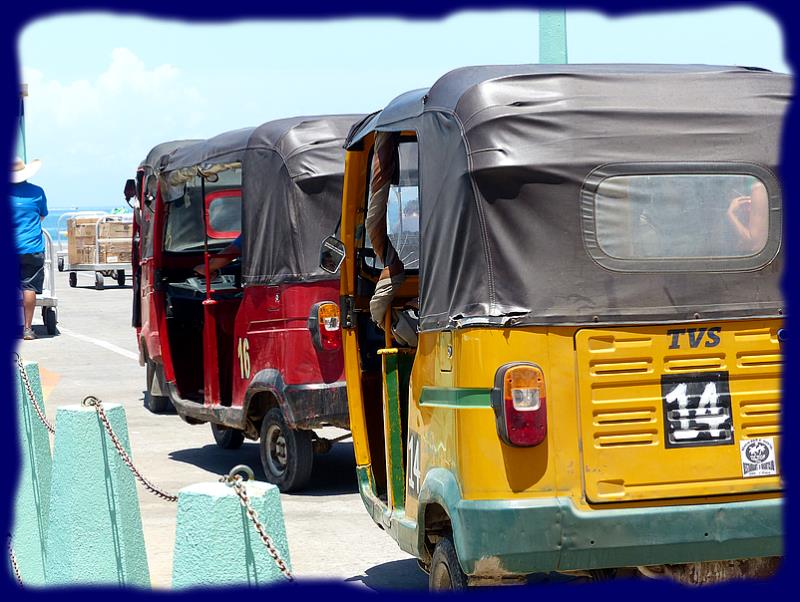 Beaucoup d'activité sur le quai, les petits taxis locaux arrivent en masse. Quelques voitures bien chargées repartent plein à ras bord.