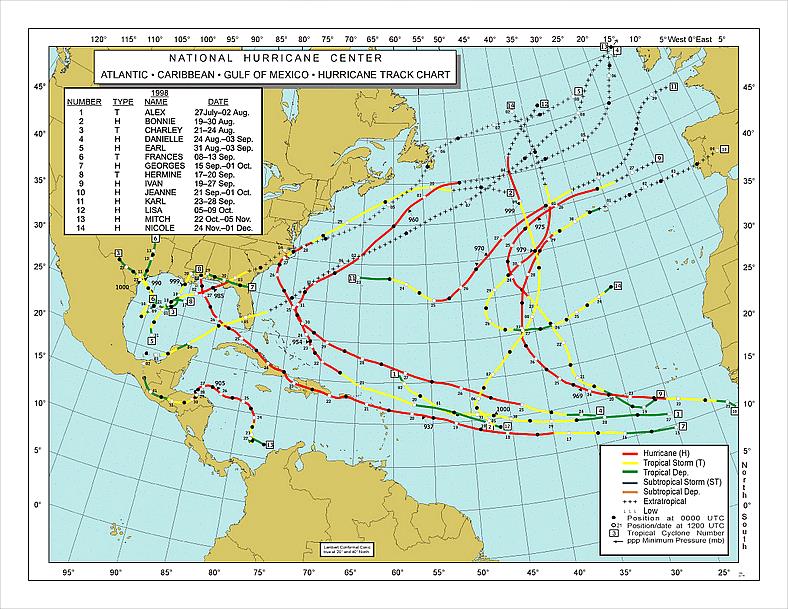Tout simplement parce que nous sommes revenus dans une zone à fort risque de cyclones, la preuve, le dernier en date... Mitch en 1998 (source internet)