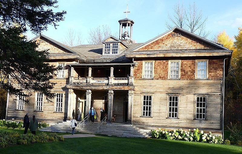 Ouiatchouan, une jolie chute d'eau - 72 m, 21 m de plus que celles du Niagara … d'où le lieu choisi par l'industriel Damase Jalbert en 1901 pour y implanter son usine de production de pulpe de bois destinée à la fabrication du papier (pulperie). Vers les années 1910, après avoir été racheté par les américains (en 1904) puis par la compagnie locale de Chicoutimi (vers 1909), le site devient alors un village avec un aqueduc, des égouts, l'électricité, le téléphone, un magasin général et une école tenue par des religieuses et il devient même officiellement une municipalité vers 1915 – Au total environ 80 maisons où vivent quasi en autarcie les 950 employés et leur famille jusque vers 1926. La crise économique de 1927 frappe la pulperie qui ferme ses portes. Abandonné jusqu'à la fin des années 60, le village est transformé en attraction touristique et classé site historique. Bon nombre de maisons ont été reconstruites mais certaines laissées dans leur jus, d'où quelques vraies ruines authentiques. Jolie balade à travers la forêt et le village puis montée en haut des chutes en télécabine. Superbe vue sur le lac. Pour les courageux, aussi la possibilité d'arriver en haut de la chute par les 764 marches…