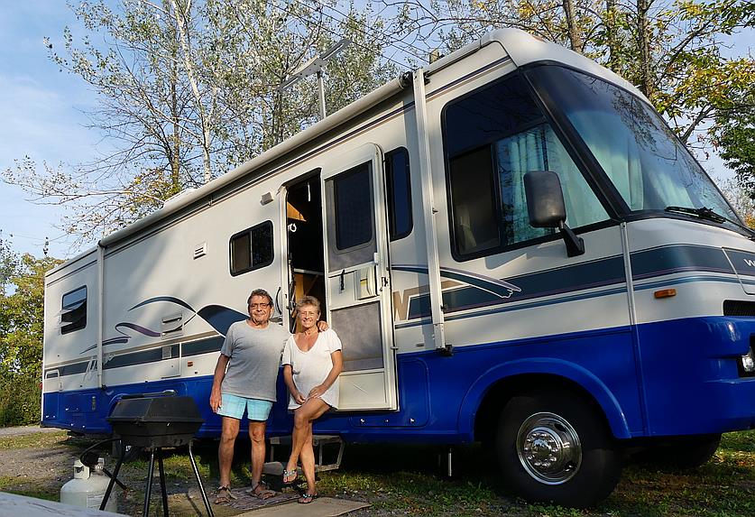 | Et ailleurs autrement... comment ? Avec l'achat d'un camping-car à un couple de marins Francine et Michel de Mothaline qui ont voyagé aux USA dans les grands parcs nationaux et au Canada. Après quelques belles saisons à son bord pendant que les cyclones sévissaient sur les Antilles, mise en vente du véhicule pour vivre autre chose. Des connaissances communes nous indiquent cette opportunité... On prend contact, photos, infos etc... et nous voici ...dans le grand Nord, au pays des lacs et des montagnes... des ours, des orignaux et des castors ... Arrivée le 13 septembre 2017 à l'aéroport de Montréal avec notre Florentine. Si l'affaire ne se fait pas, et bien nous partirons en chercher un autre, ce n'est pas ce qui manque ici.