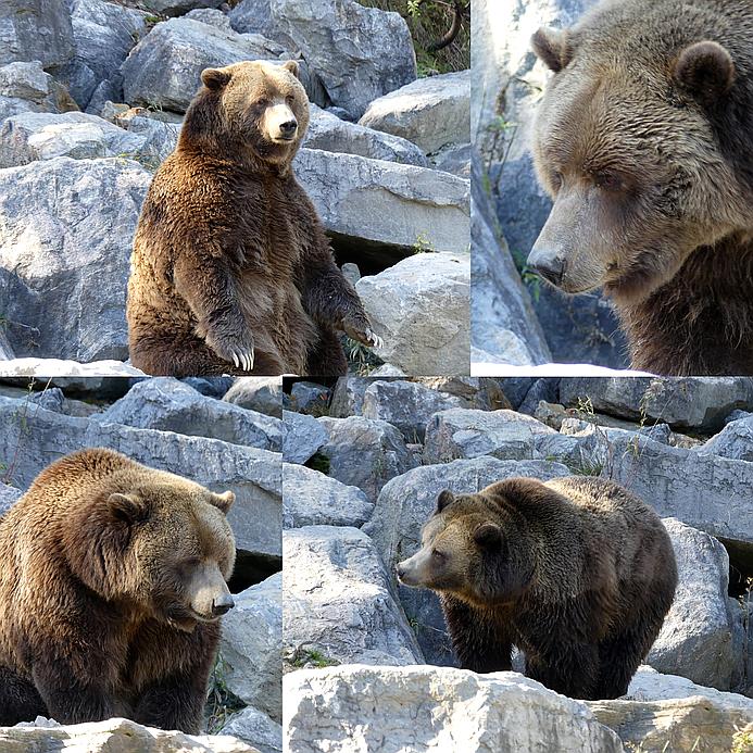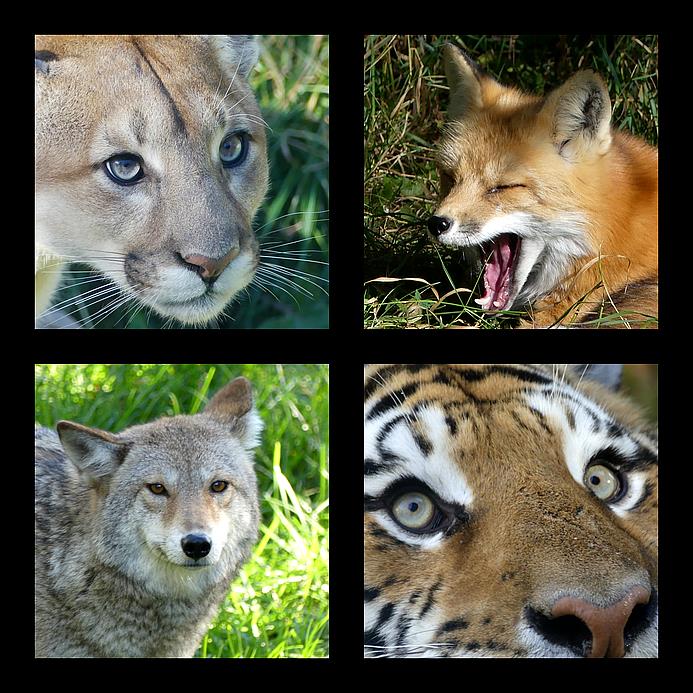 En quelques mots… enfin tellement de choses sympas que ça va être difficile… en fait, ici, les animaux sont ceux des régions du Canada ou similaires niveau météo. Aussi quelques espèces en voie d'extinction comme les tigres (sauf erreur de Mongolie). Au moins ceux qui sont ici ne finiront pas empaillé ou en carpette et ne sont pas traqués par les assoiffés de chasse. Pour ne citer que quelques-unes de ces bestioles, castor, coyote, lynx du canada, mouflette rayée, mouflon d'Amérique, grizzli, ours blanc, phoque commun, macaque japonais, loutre de rivière, porc-épic (le pote à ma copine Negra du Guatemala – pour ceux qui ont suivi le site) carcajou, raton laveur, renard roux, urubu, yack, bison, bœuf musqué, caribou, chien de prairie, orignal, loups gris, wapitis, ours noir, tigre, couguar, pygargue à tête blanche, cerf de Virginie, et j'en passe… Tous en bonne forme, bien logés, bien nourris, avec de beaux espaces de vie… ça vaut bien un peu de manque de liberté… un peu comme moi, quoi, les chats dans la nature ne dépassent pas quelques années, moi, j'en ai 16 et demi…