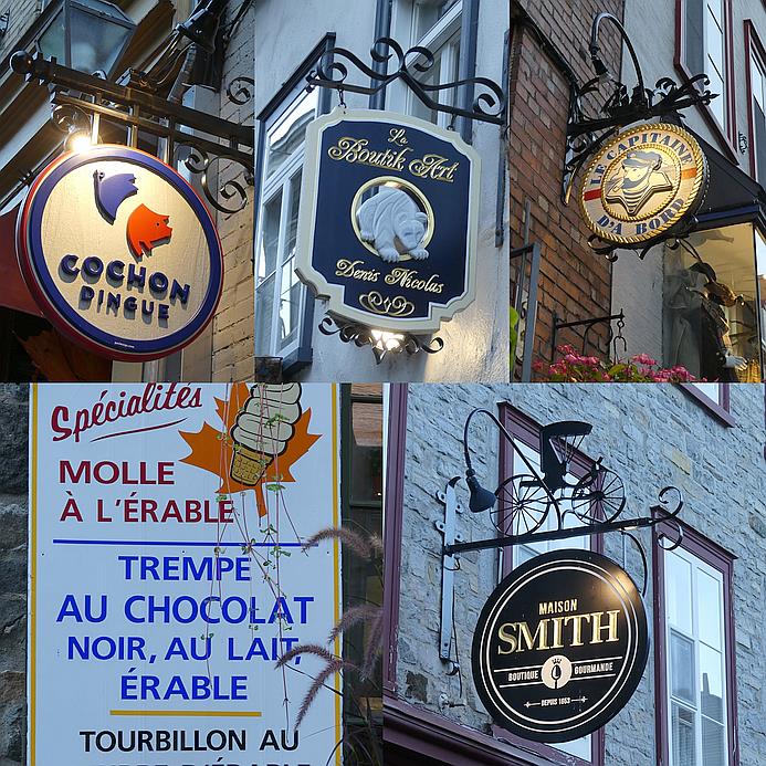 La vieille ville on peut y passer des heures, entre l'architecture, les boutiques… si si, y en a plein, tout plein avec, en passant des cuillères aux armoiries de Québec, des bonnets qui ressemblent à tous les animaux du pays, des orignaux et des ours en peluche, au moins ce ceux j'en aurai pas eu la trouille…, des pyjamas comme des barboteuses de bébés, mais pour les grands avec une poche sur les fesses, comme les kangourous, à part qu'eux, la poche, ils l'ont devant …, ça doit être sexy comme truc… sur les petites japonaises menues ok, mais sur les gros ventrus, ppppfffff!!! plein de jolis pulls, des chemises, des tenues d'indiens, des boules avec des flocons de neige comme ceux que l'on voit chez nous, enfin, je vous laisse imaginer tout ce qu'on peut acheter comme souvenirs inutiles à poser sur les étagères …