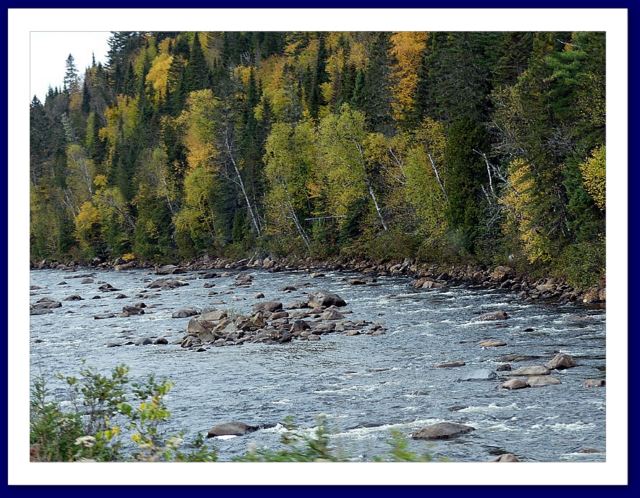 Sur ce, ils ont repris leur route, et moi ma sieste sous la couette, et nous sommes allés dans la grande ville de Saguenay, rien de bien typique, de bien spécial, ville en bordure de la rivière qui est devenue très large, plus de fjord mais une sorte de grande vallée. L'influence se fait ressentir jusqu'ici, depuis le St Laurent, l'eau est devenue salée. Ce qui est impressionnant, c'est qu'ici il y a encore la marée qui se fait ressentir, 6 m selon les guides touristiques, bien possible vu la distance à laquelle l'eau se retire des berges. Un stop ici juste parce qu'on avait besoin d'un peu d'appros, et qu'elle voulait aller voir au département du Canada le service qui s'occupe des affaires vétérinaires pour connaître les formalités nécessaires à mon retour au Guatemala… c'est par parce que je suis sous le charme du Québec que j'ai envie d'y passer l'hiver. Et bien, le bureau était fermé ce jour-là… un coup pour rien…