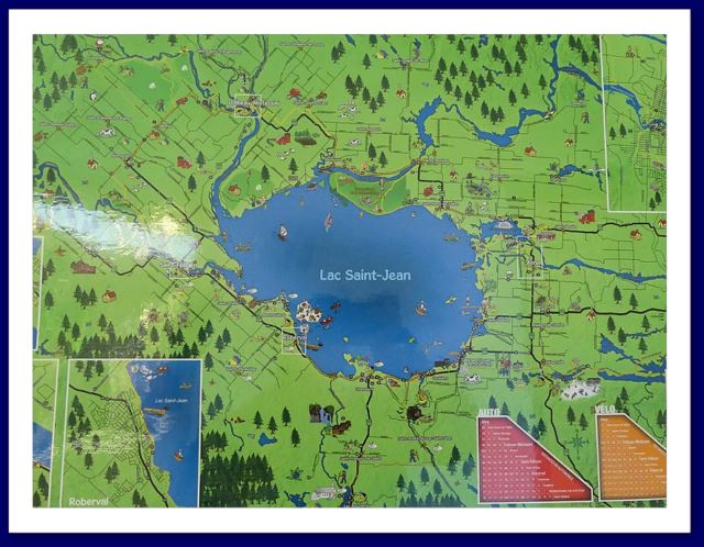 Direction le Lac St Jean…. 1000 kms carrés, 250 km de pourtour, presque tout rond…. Avec plein de plages de sable… comme dans les Caraïbes mais en nettement plus frisquet… dommage que la route n'en fasse pas le tour de plus près, il n'y a que les courageux en vélo qui peuvent se permettent cela, une piste cyclable de 256 kms tout autour… rien que d'y penser, j'en ai mal aux fesses…