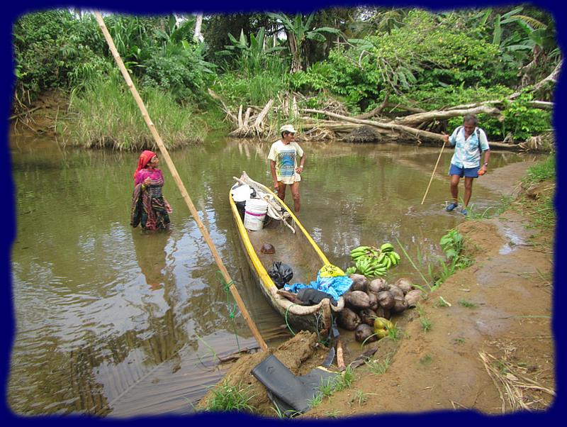 Tom et Nadine avait prévu de faire une petite randonnée avec des amis qui ne seront pas au rdv pour d'autres raisons mais nous profitons de cette opportunité pour partir avec eux sur le Rio Cidra. Cette promenade ne peut se faire qu'accompagné par Lisa, "une Kuna" du village de l'île qui porte le même nom que la rivière.