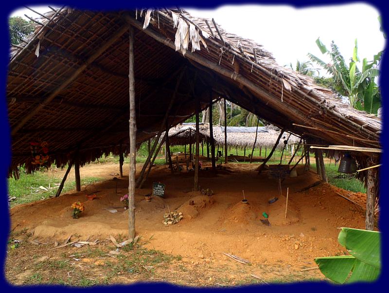 En cours de chemin elle nous explique quelques coutumes locales, nous fait "visiter" son propre cimetière, là où reposent ses parents, leur chien, quelques "connaissances", le pourquoi et le coût impressionnant d'un tel édifice par rapport au cimetière communal, son entretien, le fait qu'il soit implanté en hauteur par rapport à la saison des pluies, aux inondations et aux glissements de terrains.