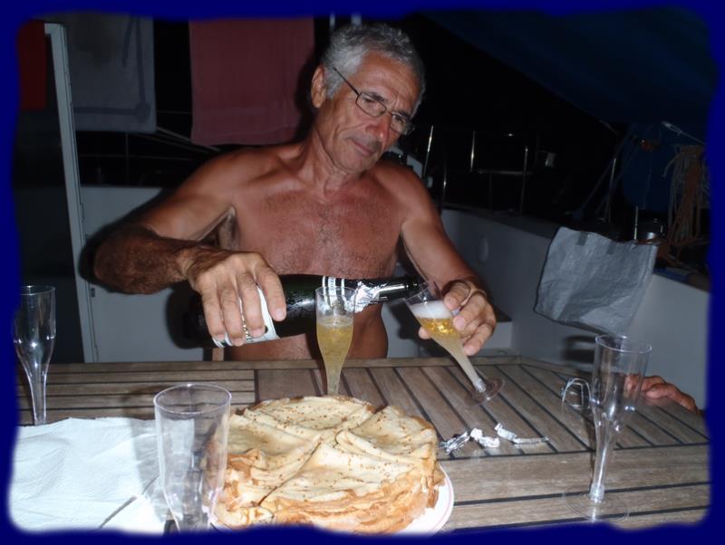 Sympathique "Crêpe party" sur Goyave arrosée par les 2 dernières bouteilles de péteux qui restaient sur Chamicha. |