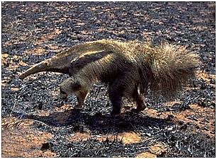 De jour comme de nuit, le tamanoir arpente son domaine en quête de fourmis. Son museau est si long qu'il peut le garder à quelques centimètres du sol tout en marchant. Son odorat le guide vers la fourmilière ou à l'occasion la termitière.
