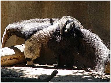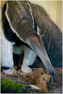 Mais, le grand fourmilier ne se rassasie pas en une seule fois. Il ne prélève qu'environ 150 fourmis par fourmilière. Il préfère grignoter toute la journée ce qui l'oblige à visiter environ 36 fourmilières par heure, soit plus de 300 par jour.