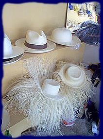 Panamas à différents stades de leur fabrication, en exposition à Montecristi.