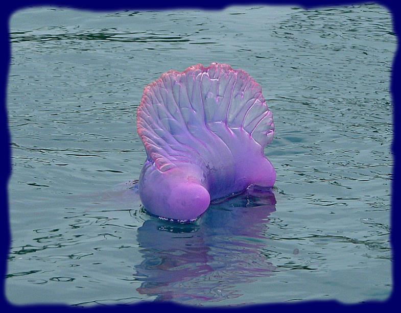 Cette étrange créature est composée d'environ 90% d'eau. Elle ne nage pas. Une crête en haut du flotteur (pneumatophore) joue le rôle d'une voile.