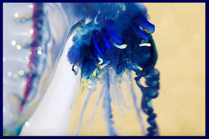 Elle se compose d'une centaine de polypes suspendus à un flotteur, pouvant mesurer jusqu'à 30 cm de long. La physalie est dangereuse pour l'homme.