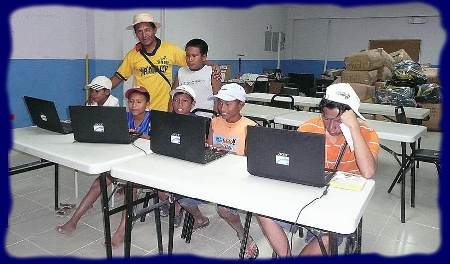 Le maître d'école avec quelques futurs champions de jeux sur pc.
