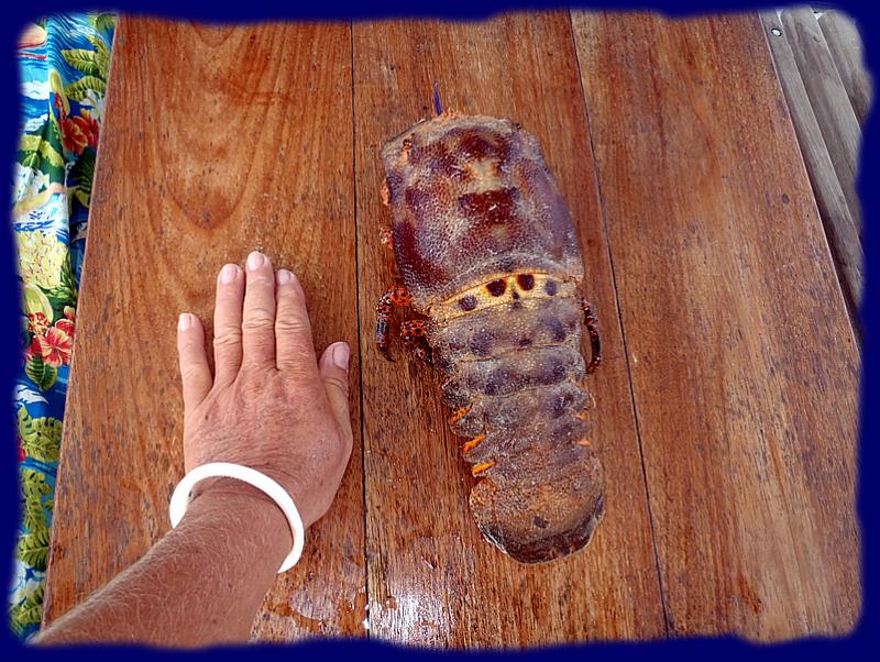On en profite pour se faire une "petite nappe", ce qui est plutôt assez rare. Compter entre 7 et 10 dollars au maximum, poulet, lambi, poulpe, et quand la pêche de la langouste est autorisée, ce qui n'est pas le cas entre début mars et fin mai, il faut prévoir 15 dollars. Servi avec riz coco, un dessert, le tout à l'abri de quelques cocotiers ... prendre le soin de choisir sa table, de préférence, ailleurs que sous un arbre bien chargé de cocos...