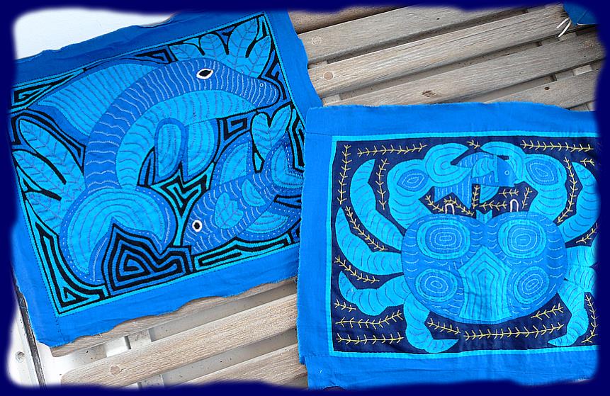 Les molas... si vous ne savez pas encore que qu'ils sont, je vous assure qu'ici, on apprend vite... pas une journée sans que les femmes kuna viennent vous voir au bateau vous en proposer.