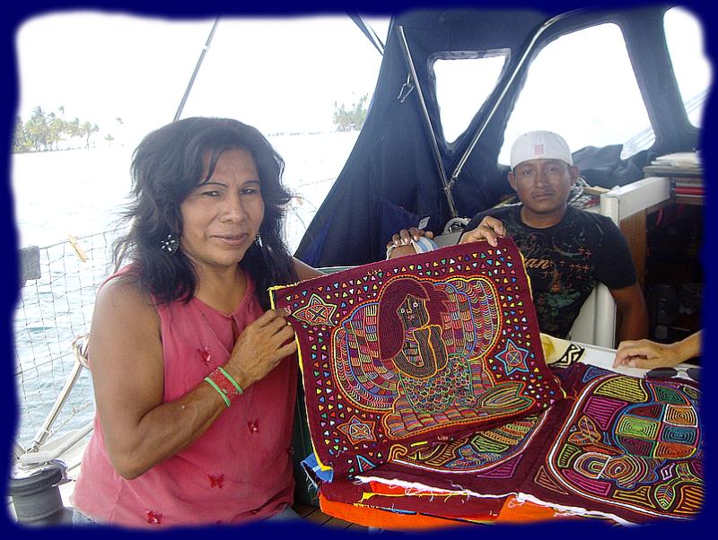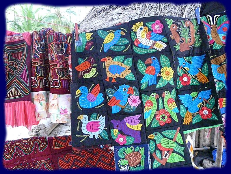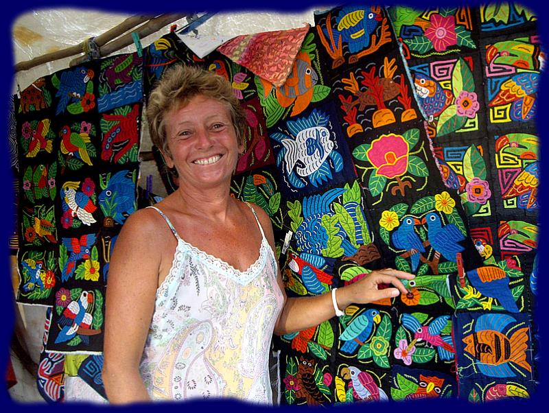 Sur toutes les îles, sauf les inhabitées pour cause de "Chicras", appellation locale des nos-nos, yen-yens, style aoutas de chez nous, insectes minuscules qui se régalent de votre peau, partout on trouve des vendeurs de molas.