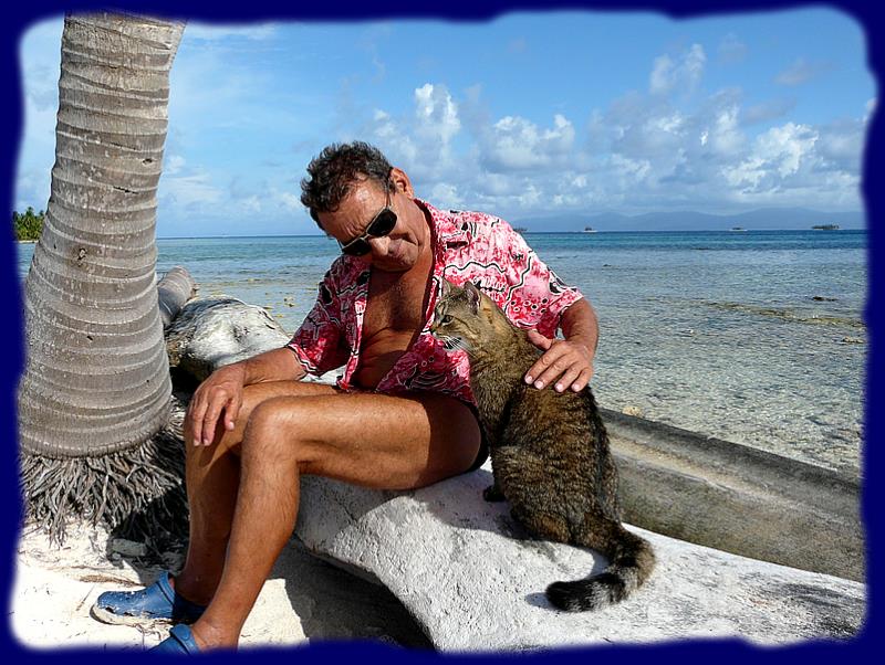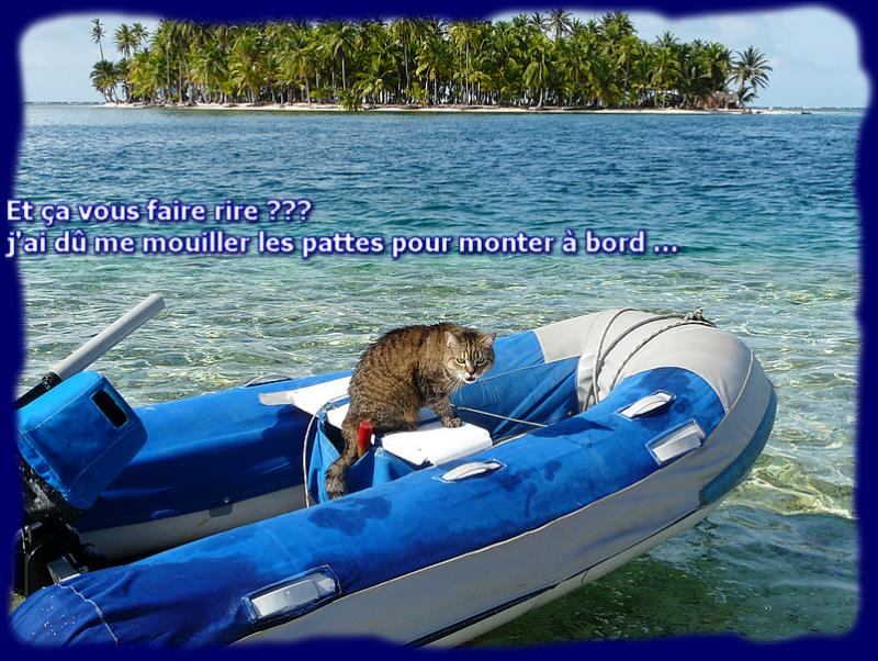 Nous avons ammené Flo sur un minuscule ilot avec juste 4 mini-cocotiers ... au cas où elle aurait eu envie de grimper se cacher dans les palmes... n'a pas aimé la balade... parce contre elle n'a pas eu trop peur dans l'annexe ... |